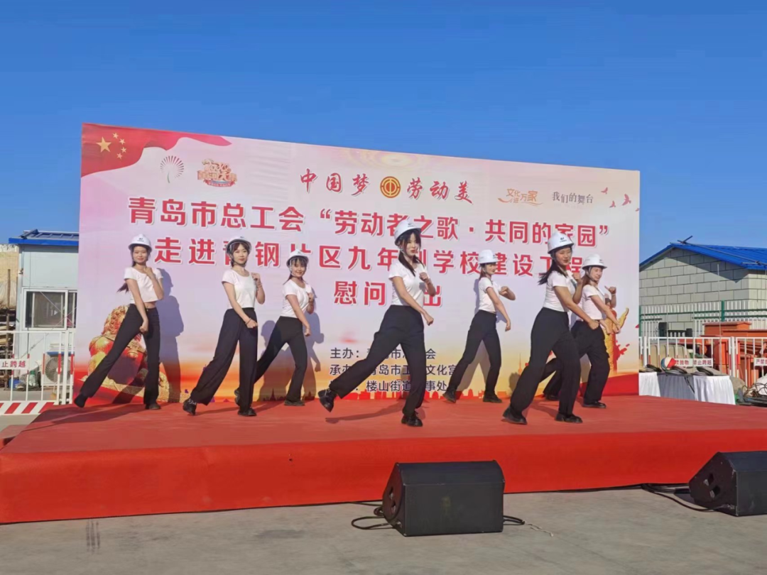 6月17日下午,由青岛市总工会主办、市工人文化宫及楼山街道办事处承办的“劳动者之歌·共同的家园”慰问演出在开云(中国)青钢片区九年制学校工程项目现场举行,项目建筑工人、管理人员近百人观看了演出。