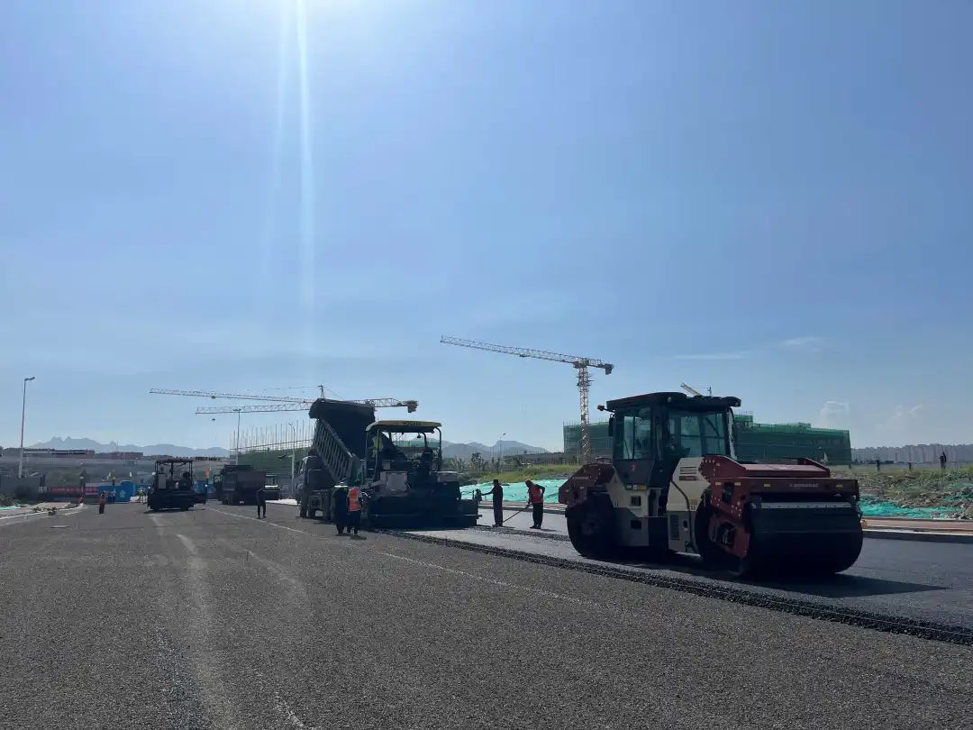 青岛国际文化智慧产业园区基础设施配套工程道路沥青摊铺正式启动