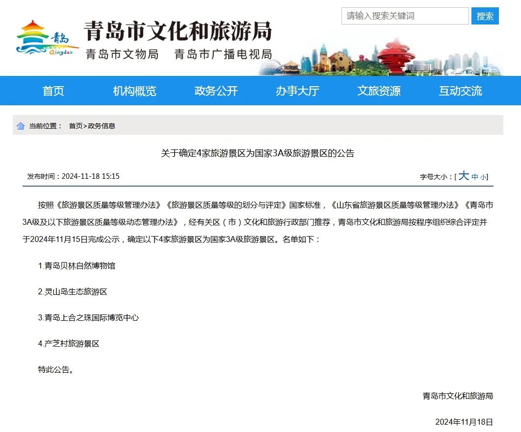 (图为青岛市文旅局网站截图)