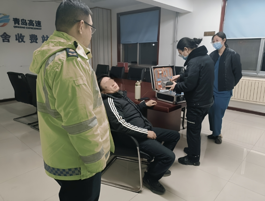 3月15日晚9时35分许,一辆轿车缓缓驶入张舍收费站车道。收费班长任秉林敏锐地注意到,司机面色苍白、神情痛苦,疑似突发心脏类疾病,身体十分虚弱,他立刻上前询问情况,并引导司机将车安全停靠在站内安全区域,第一时间呼叫同事前来支援。当时,已经下夜班了的任秉林主动留下来联系救护车,并守护在司机身旁,密切关注其身体状况。大约15分钟后,救护车抵达现场,任秉林协助医护人员迅速将司机送上救护车,并详细说明了事发经过和司机初步症状,为及时送医赢得了宝贵时间。此次救助事件,充分展现了青岛高速收费人员高度的责任心、过硬的职业素养以及出色的应急处理能力。