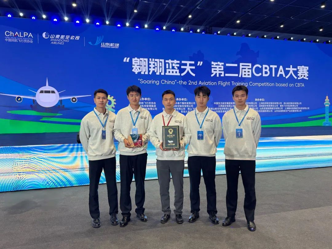 青岛航空飞行员王鑫,飞行学员谢鸿鑫、郑照宇、丁孟睿、王祥鹏组成的代表队获得团队二等奖;青岛航空飞行公司飞行教员牟云天,飞行学员孙欢、罗文逍、廖璟菘、赵新宇、兰淏、李宇超斩获团队一等奖及非技术胜任力教学组一等奖,彰显了青岛航空在飞行训练体系中的综合实力。