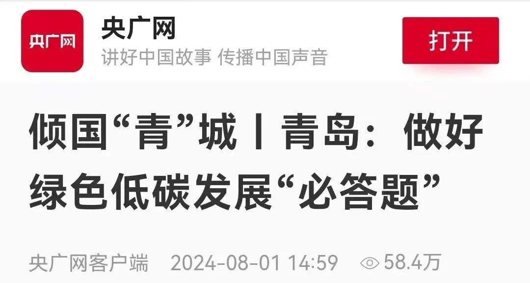 编者按:青岛,地处黄海之滨,碧海蓝天、绿水青山之间勾勒出人与自然和谐共生的画卷。倾国“青”城,是青岛的生态底色,更是城市高质量发展的名片。在山东建设绿色低碳高质量发展先行区的新征程上,青岛锚定“强龙头”定位目标,城市发展的质量结构蝶变升级。日前,央广网记者来到青岛,近距离感受青岛打造绿色低碳发展“青岛模式”的生动实践。