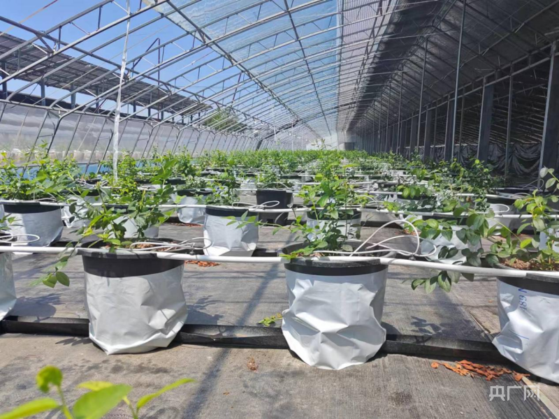 (图为种植棚内的蓝莓正在生长)
