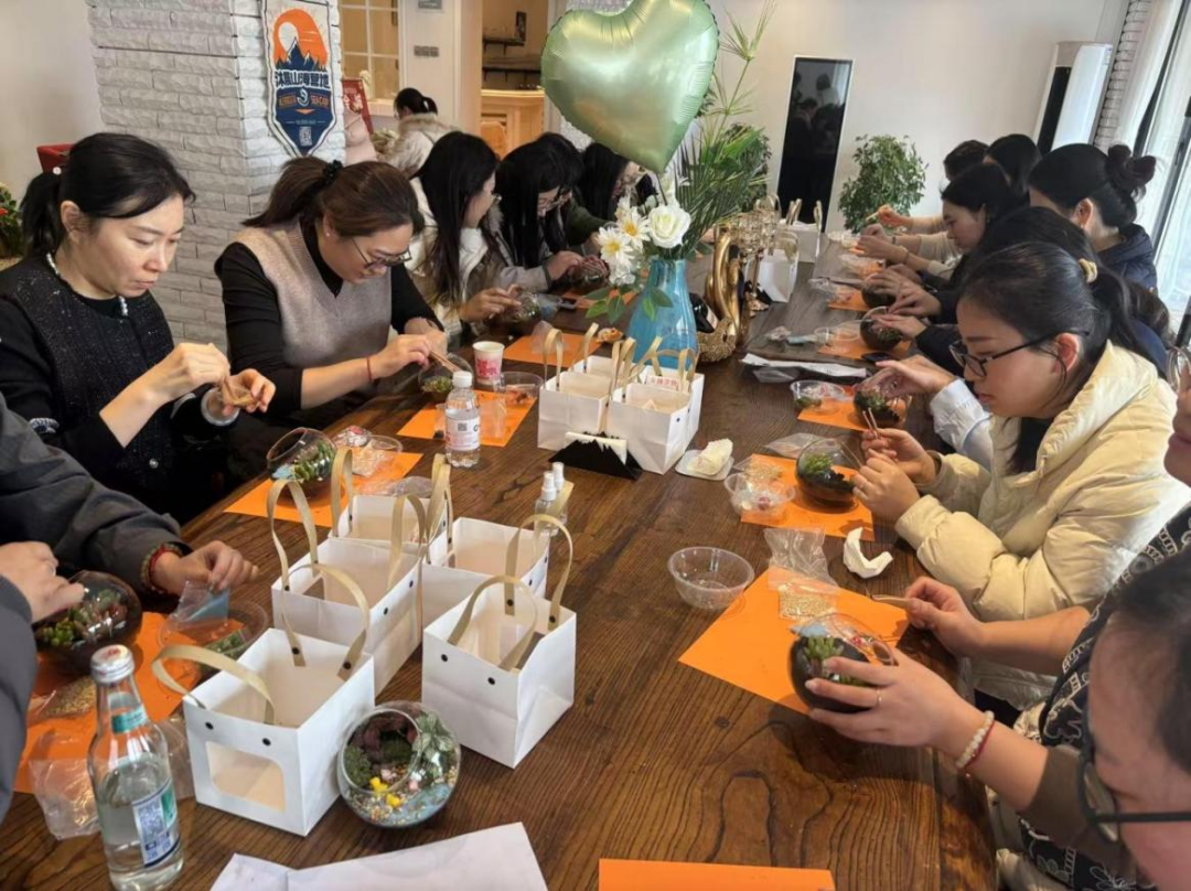 地产集团组织了“流沙如画·向美而生”巧手匠心主题活动。在轻松愉快的氛围中,大家熟悉了制作材料,了解制作流程,一丝不苟地雕琢着自己的“作品”,尽情体验手工制作的喜悦。同时,地产集团工会集中组织了《中华人民共和国妇女权益保障法》《山东省女职工劳动保护办法》等专题学习,引导广大女职工切实树牢安全防范意识,提高女职工劳动保护和权益保护意识。