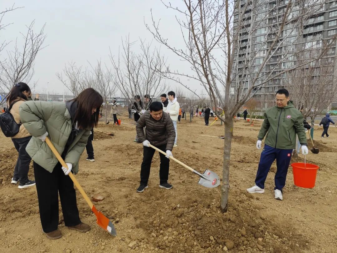 活动当天,创智菁英城现场彩旗飘扬,气氛热烈。城投集团党委委员、副总经理林松涛宣布活动正式开始。在专业人员指导下,大家分工协作,挥锹铲土、扶苗培根、提水浇灌,共栽种绚丽海棠、红叶李、鸡爪槭等树苗300余株并为树苗挂牌寄语。