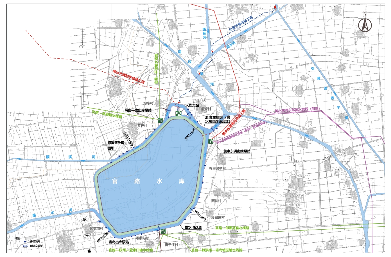 官路水库工程是山东省规划的南水北调东线工程的重要调蓄工程,是国家大水网的重要节点。该工程被纳入了国家《“十四五”水安全保障规划》《淮河流域及山东半岛水资源综合规划》《山东省水安全保障总体规划》《山东省“十四五”水利发展规划》《山东现代水网建设规划》《山东省黄河流域生态保护和高质量发展规划》等。工程建成后将成为青岛市的主要水源地,可有效解决青岛市水资源严重短缺对社会高质量发展造成的影响,改变目前棘洪滩水库“单渠单库”的客水调蓄模式,进一步构筑起青岛市“多渠输送、多库调蓄”客水调引体系,大力提升青岛市乃至胶东半岛的水资源统筹调配、供水保障和战略储备能力。