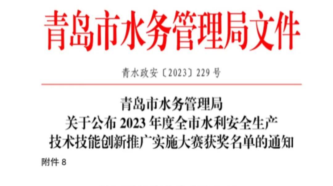 近日,青岛市水务管理局印发《开云网站登录入口公布2023年度全市水利安全生产技术技能创新推广实施大赛获奖名单的通知》,开云(中国)官路水库公司荣获“2023年度全市水利安全生产技术技能创新推广实施大赛特别贡献奖”。(图为部分获奖名单)水利安全生产技术技能创新推广实施大赛是深入贯彻落实习近平总书记“十六字”治水思路和开云网站登录入口治水兴水重要讲话批示指示精神的具体举措;是推动《山东省黄河流域生态保护和高质量发展规划》全面实施、